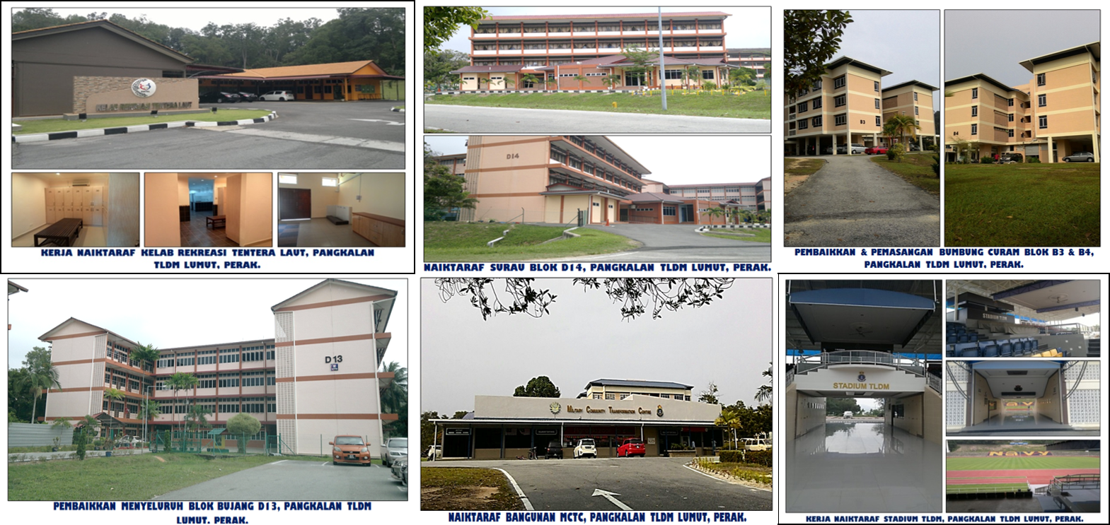 | 1 | Kerja-kerja pembaikan menyeluruh rumah keluarga Apartmen A33 di Pangkalan TLDM Lumut, Perak Darul Ridzuan | 14,325,489.15 | 14,325,489.15 | 80 minggu | 9.10.2023 | 20.4.2025 | 30.5.2025 |